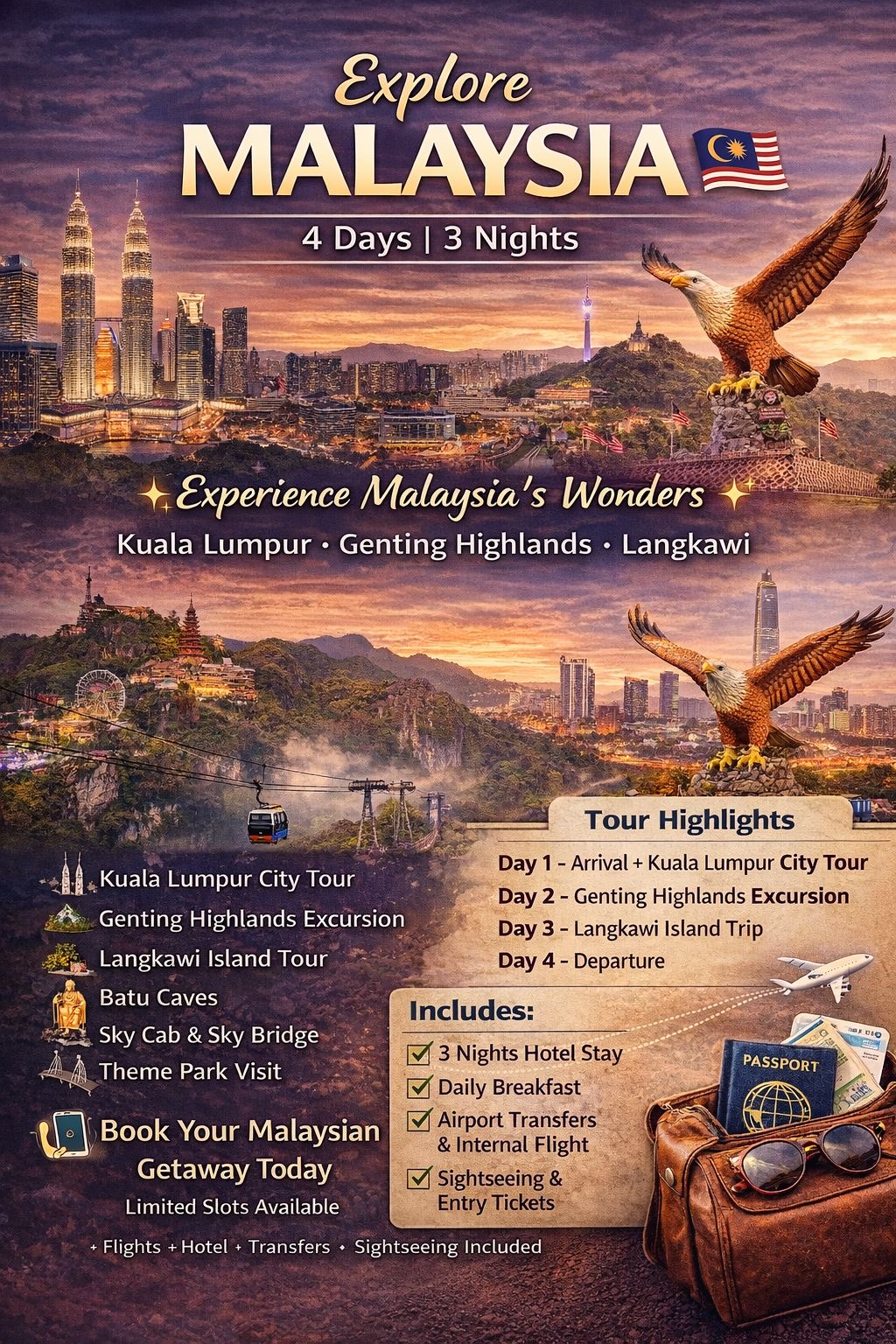 The iconic Petronas Twin Towers in Kuala Lumpur, Genting Highlands, historic Melaka